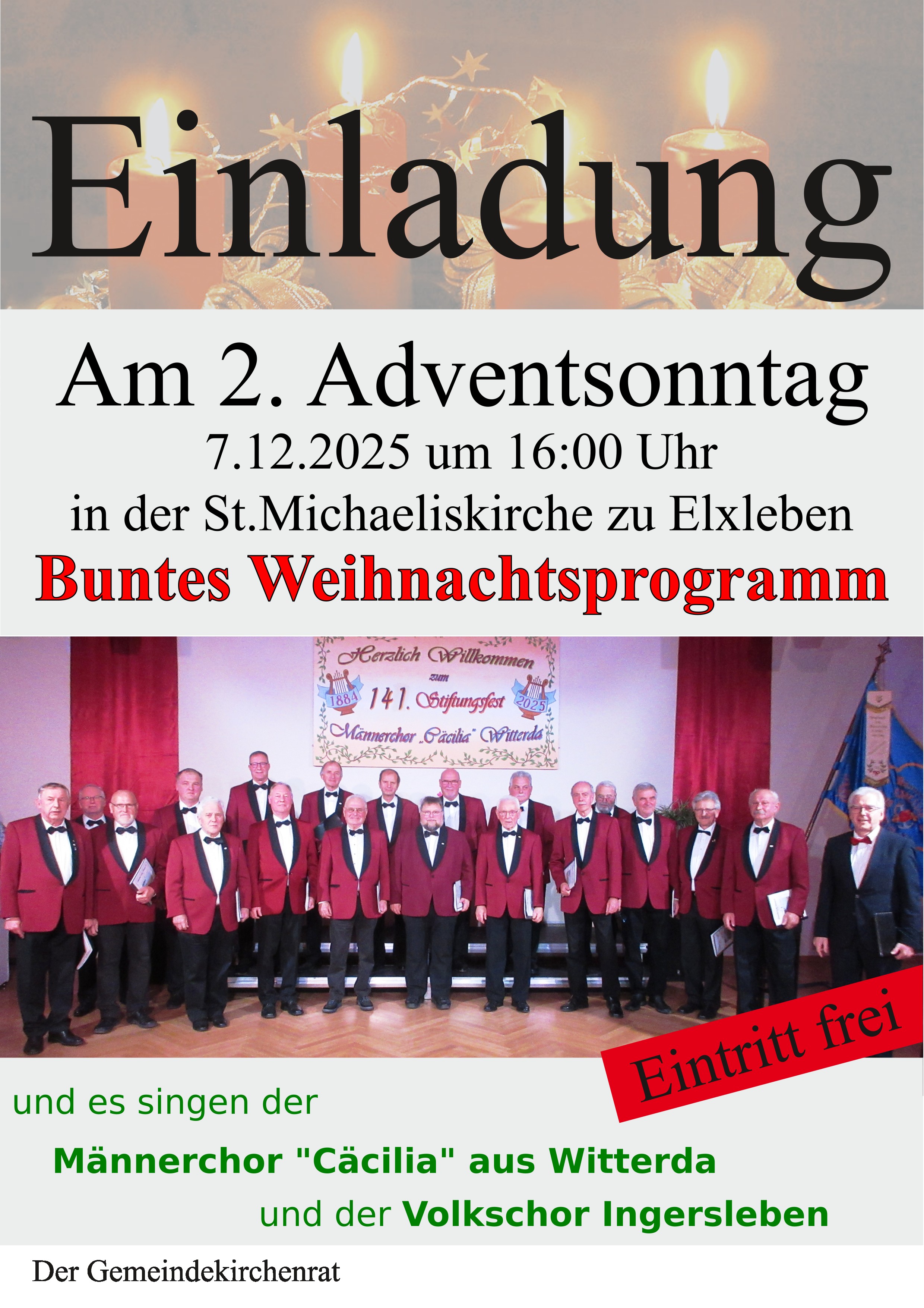 Mit diesem Bild des Adventskonzertes in Witterda bedanken wir uns bei allen Gästen für die treue Begleitung auch in diesem Jahr und verabschieden uns in die wohlverdiente Ruhe und Besinnung der Weihnachtszeit.